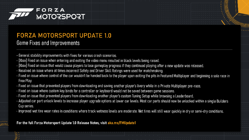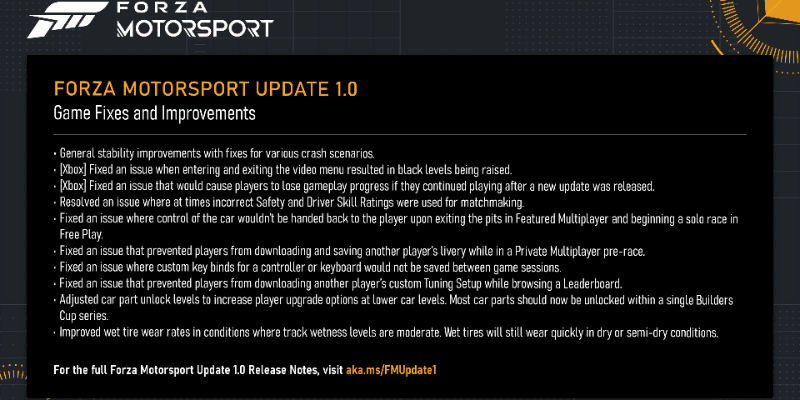 Также были внесены корректировки в баланс режима «Карьера пилота». Вымышленные команды Konnersport и APXGP изначально получали слишком много ресурсов, что давало им несправедливое преимущество. Теперь скорость получения ресурсов для этих команд была скорректирована, чтобы со временем выровняться с показателями реальных команд. Накопленные очки в текущих сохранениях при этом не сгорают.